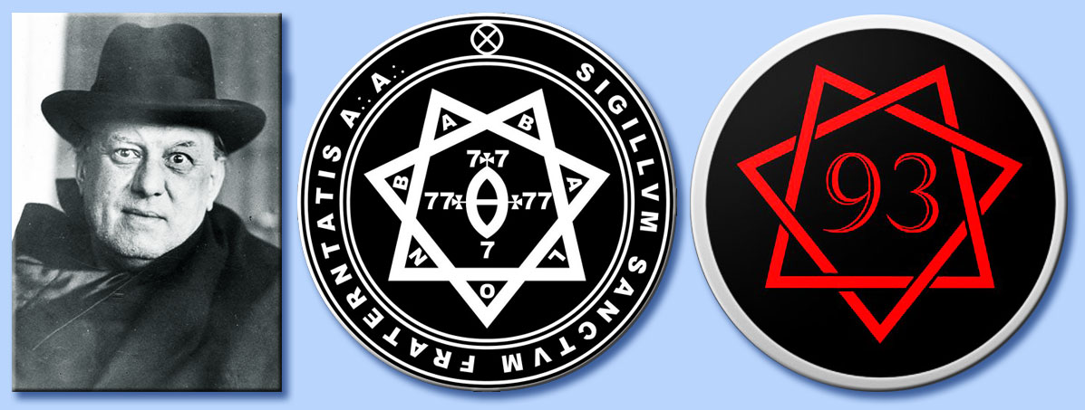 Sopra: il mago nero Aleister Crowley e due esempi del sigillo dell'Astrum Argenteum.