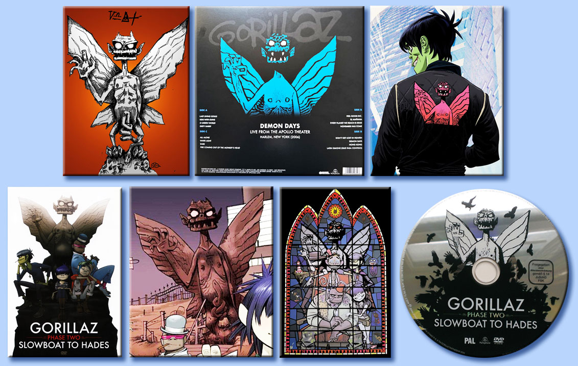 Questo orribile demonio, rappresentato da Hewlett come una specie di mascotte, è entrato allegramente a far parte della combriccola dei Gorillaz. Ecco alcuni esempi grafici.