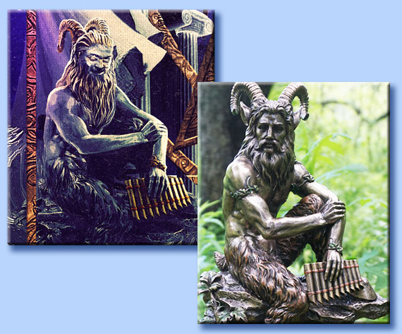 In basso, a destra appare invece Pan, la divinità greca dalle fattezze caprine di satiro legato alla sessualità, all'orgia e all'ebbrezza, ma anche temuto per la sua ferocia. Nelle mani tiene un flauto. La figura di Pan occupa un posto di primo piano nell'opera di Aleister Crowley, il quale gli dedicò una poesia: Inno a Pan.