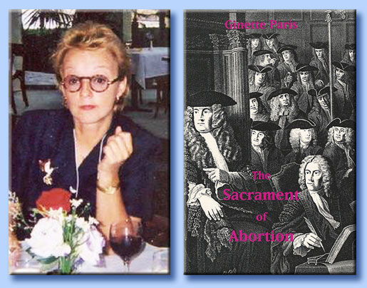 Sopra: la Ginette Paris e il suo libro The Sacrament of Abortion.